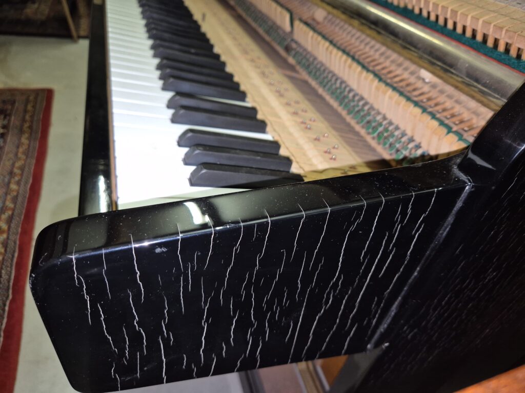 Deze Ibach heeft een prachtige klank met een renner mechaniek. de lak heeft schade hierdoor heeft bij een lageren prijs.